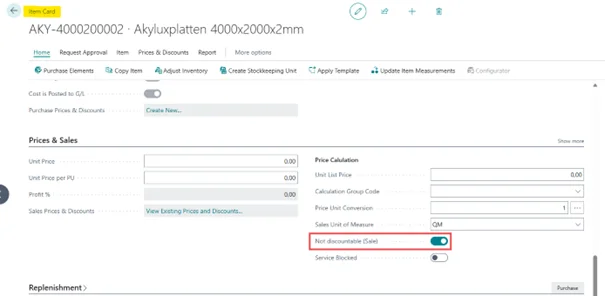Ga naar het sneltabblad Prijzen en verkoop en zoek het veld Niet aftrekbaar (verkoop).