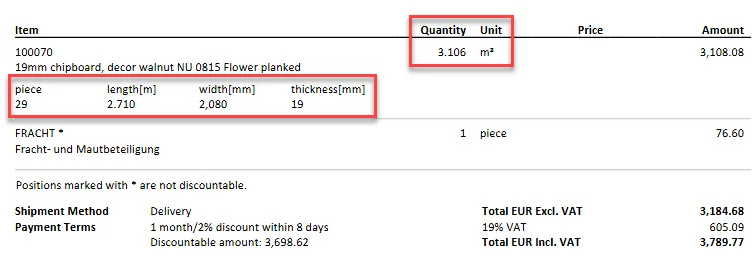 Kehren Sie zu dem von Ihnen erstellten Verkaufsauftrag zurück, und wiederholen Sie die Schritte 7 bis 10. Auf Ihrer Vorauszahlungsrechnung werden nun Maße und die Menge angedruckt.