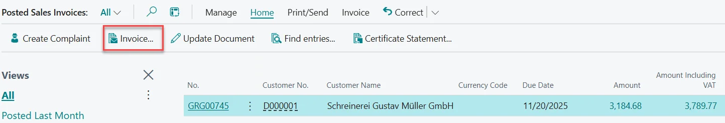 Sehen wir uns nun an, wie die Standard-Vorauszahlungsrechnung aussieht. Klicken Sie im oberen Menü auf Zugehörige, Vorauszahlung und Vorauszahlungsrechnungen.